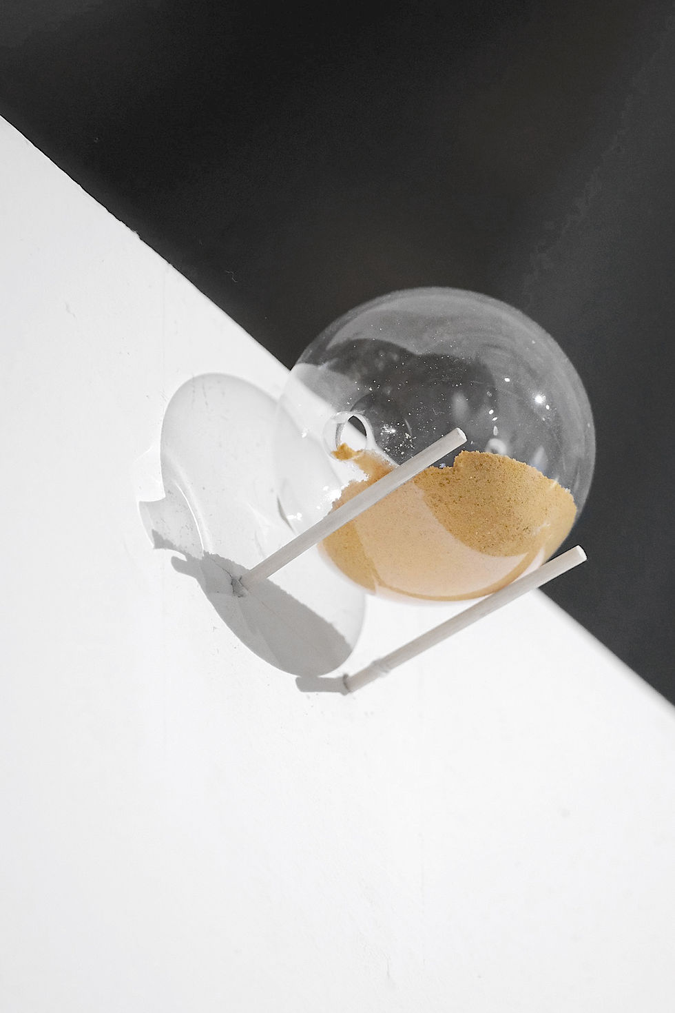 CHUANG HSIN-I 莊馨怡 創作關注物質作為時間痕跡與情感顯影的雙重性,藉以顯現「回憶」過程可觸卻又隱約的「生痕」現象。在此展中,她關切「不再/尚未」的中介狀態,探詢遺跡如何在「記念」與「紀念」之間形成一種懸置暫留的物質性。作品召喚記憶的「未完成」與裂縫性的在場,如同日常感知裡未被界定的事件,正開展一段沒有精確參照卻持續延展的「記念」過程。在這裡,紀念被鬆動,記念得以持存,而遺跡成為未竟的在場。